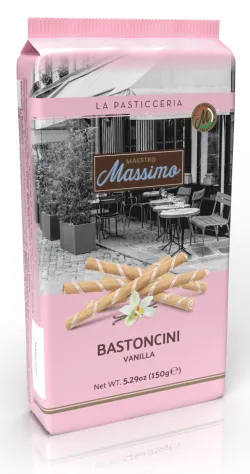 Maestro Massimo Bastoncini sú charakteristické svojou chrumkavou vaječnou trubičkou, ktorá je skvele upečená do zlatista a ponúka príjemnú kontrastnú textúru k jemnej vanilkovej náplni. Pri každom zahryznutí sa trubička jemne láme a zároveň poskytuje dostatočnú pevnosť na to, aby náplň perfektne držala vo vnútri.